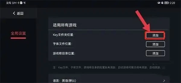 2、在設置里找到“key文件夾位置”這一項,點擊它右邊的“添加”按鈕。