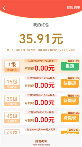 3、合成出指定等級的車輛還能額外獲得提現紅包,實際測試下來全部都是秒到賬!