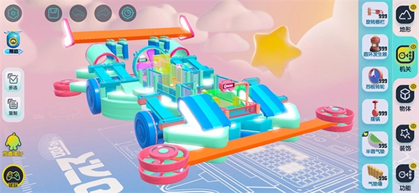 建造系統是蛋仔派對工坊玩法的核心部分,在家族模式里,蛋仔能盡情發揮想象力,自由創作關卡。蛋仔們可以借助各類模板或開啟空白地圖進入建造模式,從而啟動建筑系統,隨心搭建專屬地圖。進入建造模式后,蛋仔們通過運用各種物體來打造自己的地圖,建造完成并保存后,就能進入地圖游玩,測試通關情況。