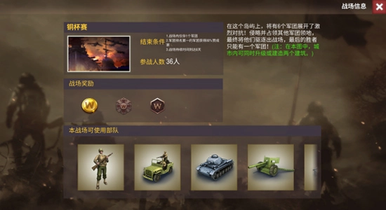 2、游戲中的戰(zhàn)場是以匹配的機(jī)制來進(jìn)行的,通常戰(zhàn)場持續(xù)時(shí)間為7天,會(huì)根據(jù)各位統(tǒng)帥及軍團(tuán)的投票延長2天。目前的戰(zhàn)場共分為普通戰(zhàn)場及聯(lián)賽戰(zhàn)場。