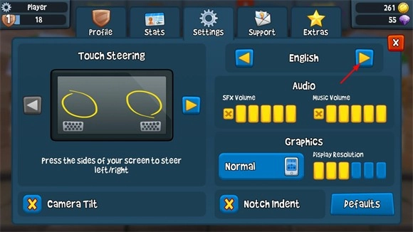 3、點擊English兩側的箭頭來切換語言。