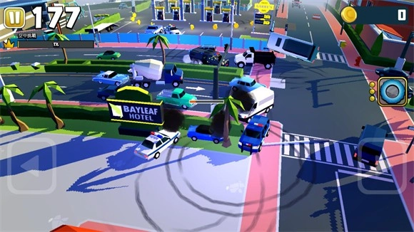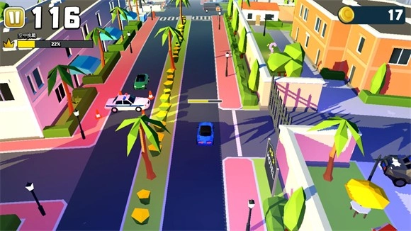 3、操控小車(chē)躲避警車(chē)的追捕來(lái)獲得更高分?jǐn)?shù),收集路途中的金幣可以解鎖新車(chē)。
