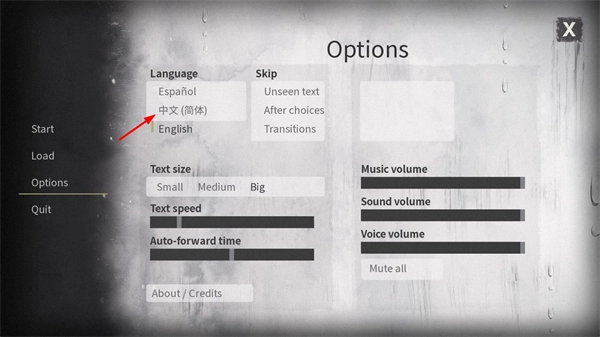 1、在開始界面點擊下方的Options選項,然后選擇中文(簡體)