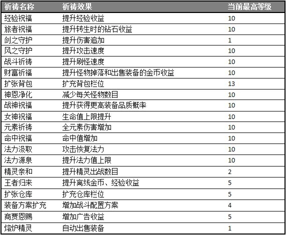 女神祭司是各位勇者大大在游戲的前期就會經常邂逅的事件NPC之一,在女神祭司的指引下,通過消耗鉆石參與祈禱儀式,就可以獲得非常強力的祈禱屬性,祈禱屬性是女神的永久加護,獲得之后就會永久生效,目前的所有祈禱屬性列表如下: