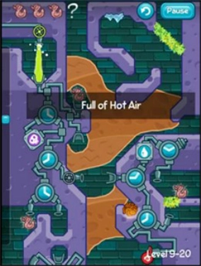 1、這一關卡首先要完成的是把熱氣球充滿氣,在這里我們得先將左上角的水槽裝滿毒水,并且要確保它不會漏出來。