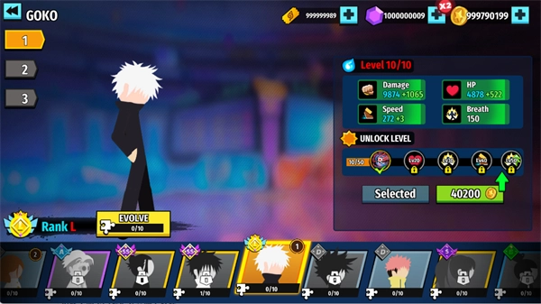 在火柴人咒術(shù)回戰(zhàn)正版游戲里,解鎖新角色的方式是收集對(duì)應(yīng)的角色碎片,成功獲取角色后,你能用金幣提升他們的等級(jí),進(jìn)而增強(qiáng)角色屬性。而在格斗對(duì)決的環(huán)節(jié)中,還能運(yùn)用各式各樣炫酷華麗的技能展開(kāi)戰(zhàn)斗。