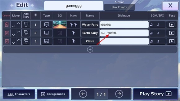 5、在dialogue里點擊空白欄可以輸入角色的對話內(nèi)容。