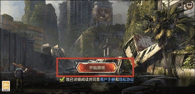 1、啟動游戲后,在標題界面勾選“我已詳細閱讀并同意用戶手冊和隱私協議”,然后找到并點擊“開始游戲”選項;