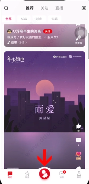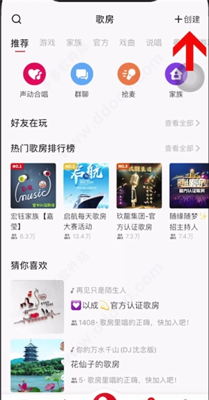 1、打開全民K歌,在首頁點(diǎn)擊底部的歌房選項(xiàng)。