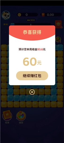 6、隨著消除關卡的不斷通關,每周通過消除獲得的收益會持續增加,并且可以提現。