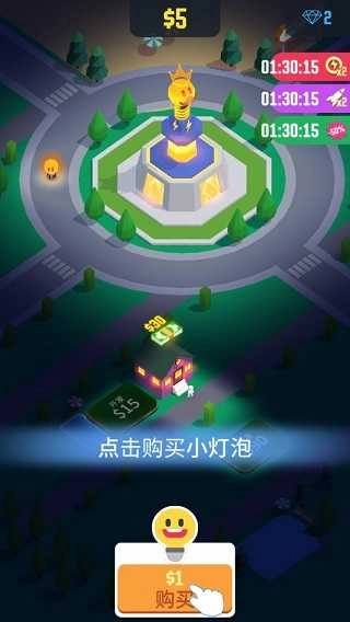 初始畫面里,整座城市籠罩在幽藍暗影之中,唯有中央主樓泛著微弱光芒。你的使命,就是以燈泡為筆、電力為墨,在這片沉睡的土地上寫下屬于自己的光明敘事。