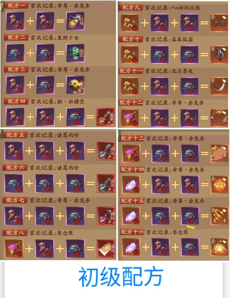 染料+千年玄鐵+高級皮毛=四像召喚符