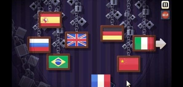5、用螺絲刀(字母T)擰掉4個螺絲,點擊地毯翹起的角,撿起鑰匙,然后畫面移到最左的“國旗”,用鑰匙解開法國國旗(藍白紅)上方對應鑰匙的鎖,獲得法國國旗。