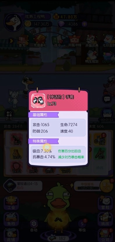 4、擁有強(qiáng)大且人性化的放置掛機(jī)機(jī)制,大鵝們會自動進(jìn)行資源探索和成長積累。玩家只需每日花費較短時間進(jìn)行關(guān)鍵操作(如隊伍調(diào)整、裝備升級),即可持續(xù)收獲離線收益,完美適配現(xiàn)代玩家碎片化的游戲時間。