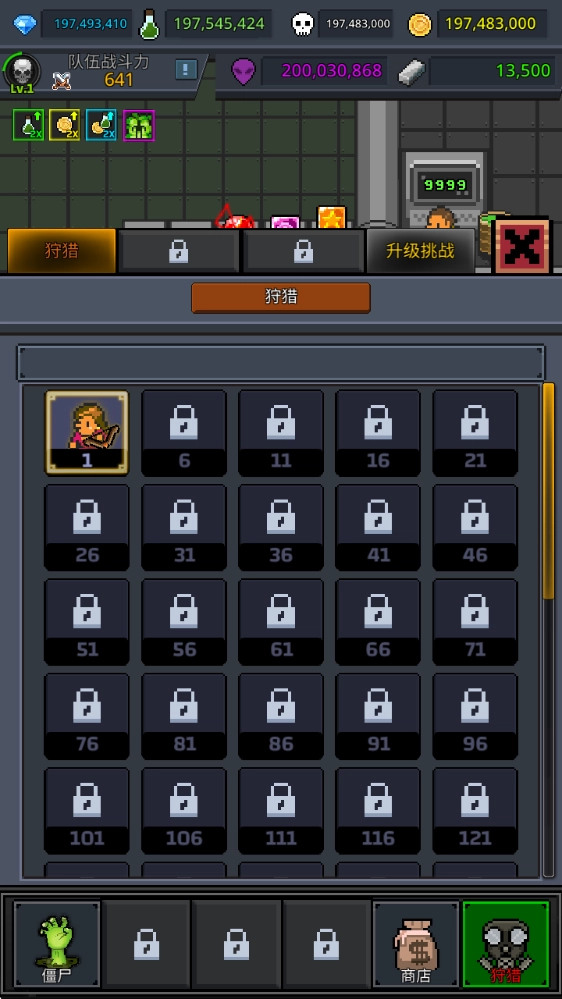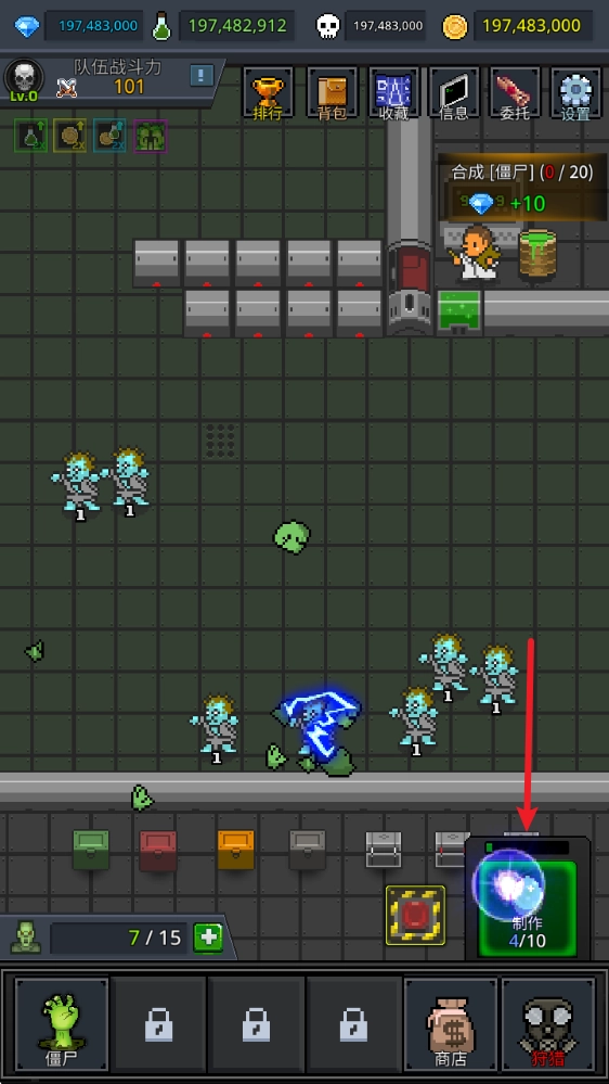 4、有了足夠的僵尸大隊(duì)后,我們可以點(diǎn)擊右下角的狩獵開始戰(zhàn)斗。