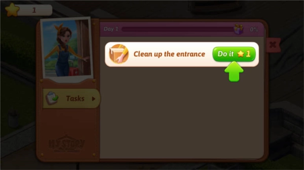 每通過一關三消謎題就能得到“星星”,這些星星可以用來解鎖裝修環節,像清理大廳、粉刷墻壁、購買家具之類的操作都需要用到它。