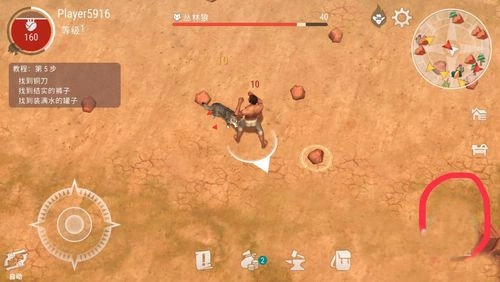 3、面對遇到的野獸或者小動物,點擊右下角的戰斗按鈕,與之進行戰斗。