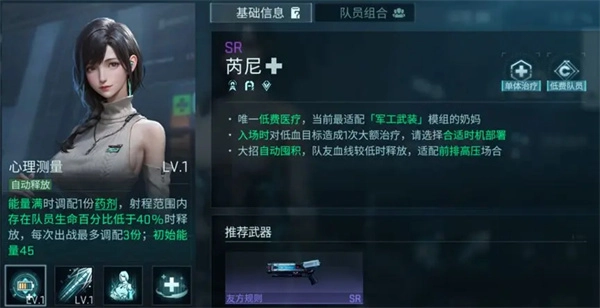 2、還有就是黑盾征募滿50抽,那么就能自選一個(gè)SSR隊(duì)員,其次首選50抽就能得到SSR,直接激活潛能插件提升戰(zhàn)力。之后則是每300抽可以自選SSR,建議優(yōu)先選擇梅洛,替換掉過劇情獲得的R級(jí)重盾【留聲】。梅洛大招護(hù)盾+嘲諷+補(bǔ)傷害三位一體,是前中期最為全面的重盾隊(duì)員。