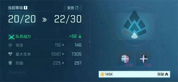 3、指揮官等級(jí)每提升10級(jí),隊(duì)員可突破一次提升等級(jí)上限,獲得屬性提升。突破材料通過主線或啟程計(jì)劃獲取。
