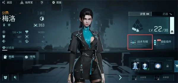 4、技能分為大招、戰(zhàn)技、專屬天賦三類。可在突破等階后進(jìn)入【戰(zhàn)術(shù)專精】頁面,使用突破材料和充能精核進(jìn)行激活與提升。材料可通過掃蕩主線獲取。