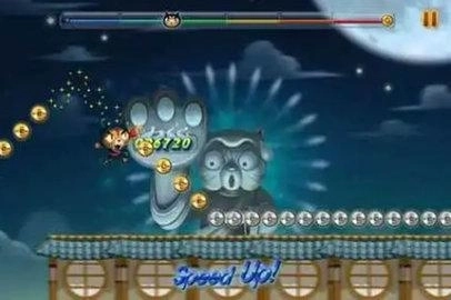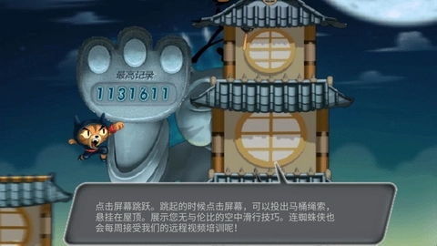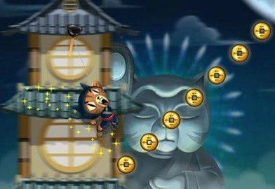 3、輕輕點擊一下屏幕,我們的忍者貓就會跳起來。