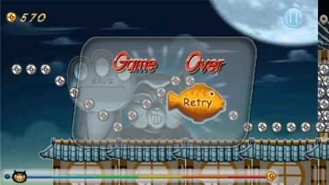 6、要是不慎掉落,游戲將直接結束,此時可點擊“Retry”重新挑戰。