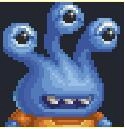 衣著:穿著橙色囚服,全身紫色,長得3只眼,像章魚一樣的怪物