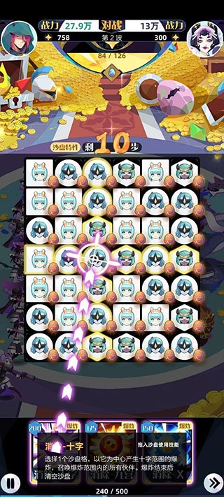 3、通過觀察怪物分布,這里我們選擇使用技能“消除十字爆炸”,可以發(fā)揮技能最大作用。
