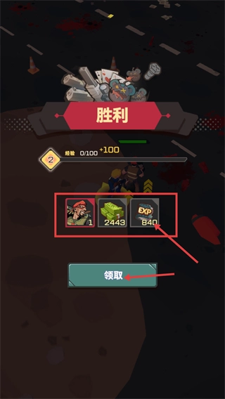 4、達成【勝利】后點擊【領取】按鈕,可獲取【2443】資源、【840】【Exp】,等級進度也會隨之提升100點。