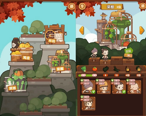 經營一家飯店,沒有食材怎么行?需要玩家去探索食材,這也是主線人任務之一。在自己的“后花園”里,有菜棚、雞舍、作坊等,在里面玩家可能派出廚師去探索菜品(白菜、西紅柿、雞蛋等),然后用收獲的菜品為客人做菜。