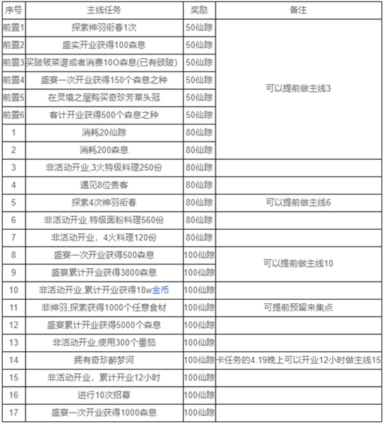 2、重點:盛宴每次開業40柴火,每次有100森息保底(1份青菜也可以,但建議拉滿9組貴菜),前期建議拉滿9組總價最貴的普通菜譜,等活動食材多起來就用活動菜譜+普通菜譜搭配使用,