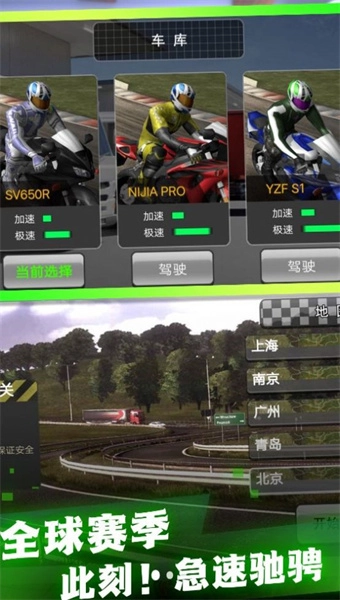 2、豐富的游戲賽道選擇:玩家將駕駛摩托車穿梭于車水馬龍的城市街道、曲折盤旋的山路等各類賽道,感受速度與激情的精彩碰撞。