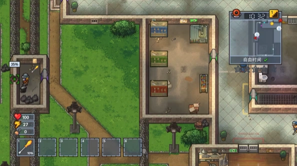 在早起點名后,快速地從獄友的抽屜里收集齊三個螺絲刀,有能夠補充體力值的食物也帶上,鑿穿這個小房間的墻面就可以出去了。