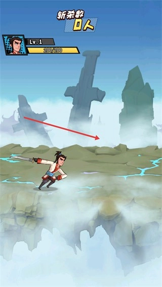 1、進入關卡后,角色初始等級為Lv.1,需要在云霧繚繞的場景中移動探索,核心目標是通過擊敗敵方角色積累斬殺數量,以此提升自身等級和各項屬性。