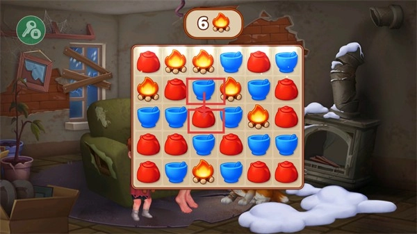 2、參與消除關卡時,通過匹配【火焰】【紅色】【藍色】元素進行消除,當累計消除的火焰數量達到【6】個目標時,即可推進關卡進度。