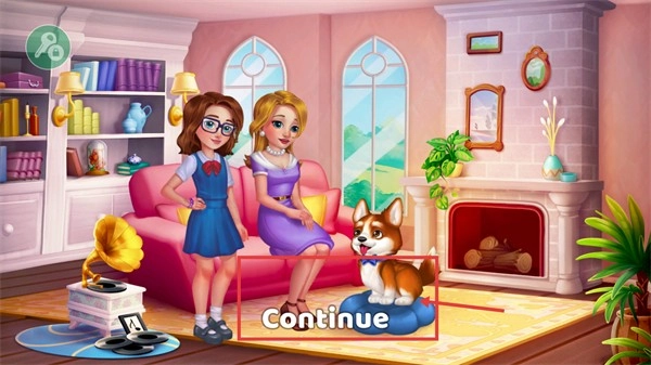 4、完成關卡后點擊【Continue】按鈕,進入后續場景,解鎖裝飾后的新環境,推進游戲的劇情與場景解鎖流程。
