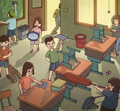 3、藍衣男孩是打掃天花板的,點擊他就可以了。