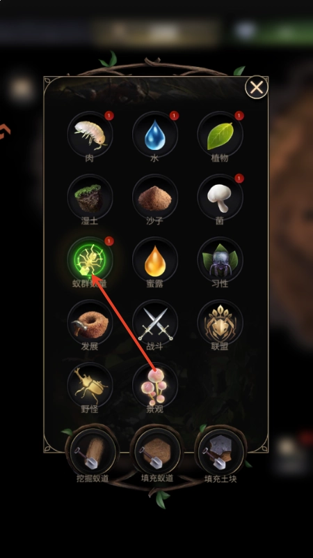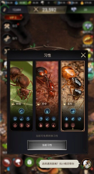 如果你選擇了種植習性,那么在短時間之內,你將以超越尋常的速度發展蟻巢。