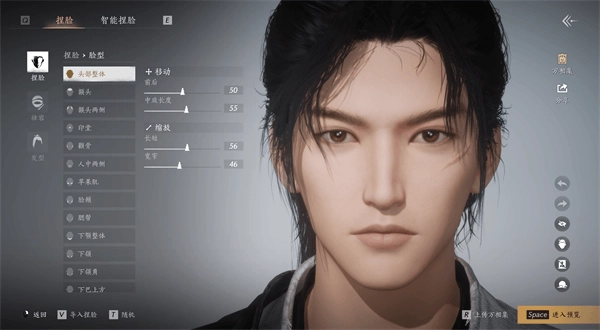 4、在捏臉模式中,玩家可以自由調整角色的臉型等,甚至細化到單側調整