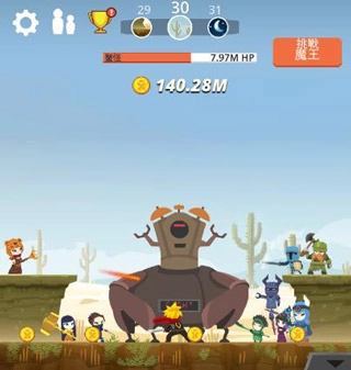 這是一款輕松簡單的游戲,全程無需玩家過多操作,只需瘋狂點擊屏幕就能砍殺怪物。游戲里有多種可提升屬性的武器裝備與寵物,它們都能通過升級獲得更強的屬性加成。玩家攻擊怪物造成傷害后會掉落金幣,拾取這些金幣就能用來升級裝備、道具和寵物。