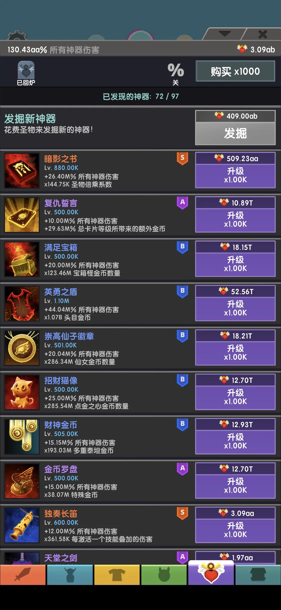 4、神器界面:通關80級后可解鎖強大的神器功能。