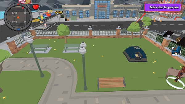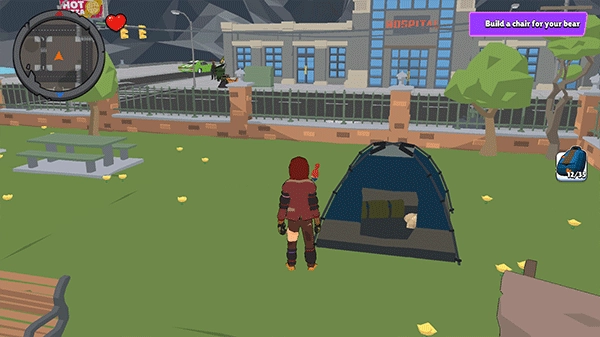 3、前往公園公告牌(地圖標(biāo)識(shí)點(diǎn)),可以搭建帳篷、擺放凳子等生活物品。