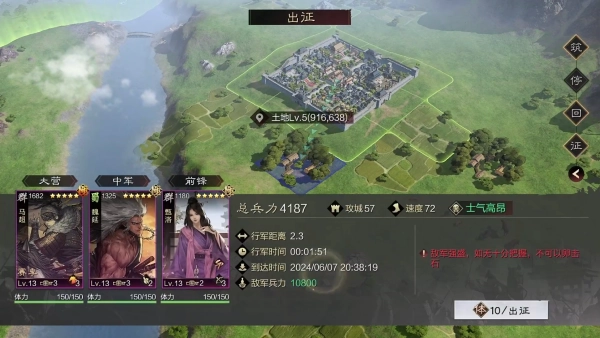 3、出征之前,安排好武將和兵力,只有足夠的戰斗力,才能夠讓你擊敗對手。
