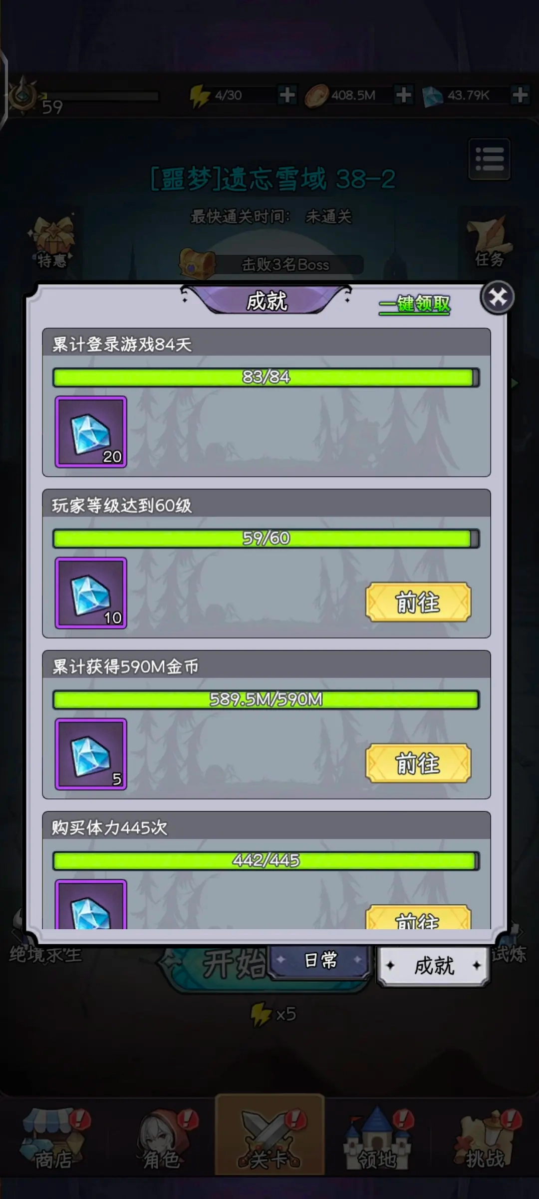 2、一日一結,掃蕩不計入擊殺小怪和boss數量等任務,完成任務需要手打(成就給大量鉆石,有時間建議手打);