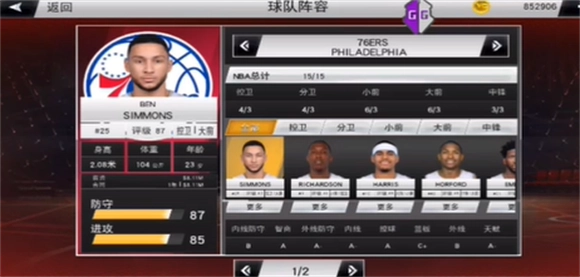 3、進入管理陣容,我們可以在右側看到球員列表。再點擊右側球員頭像下的更多按鈕。