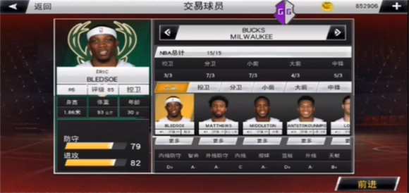 3、在這里可以看到球員陣容,選擇你要交易的球員。