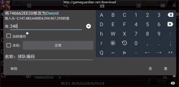 6、找到相對應的球員編碼,把編碼值改為240,點擊是即可。
