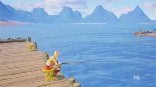 3、我們來到海邊的釣魚小屋即可釣魚,釣魚過程中看見魚咬鉤,水面有浪花波動時(shí)提竿,基本都是可以釣上來噠~