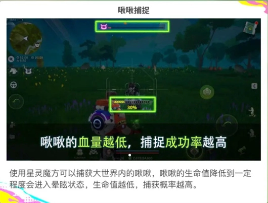 4、擁有一定數(shù)量的星靈魔方后,小伙伴們可以在野外尋找合適的啾啾或坐騎進(jìn)行捕捉。將準(zhǔn)心對準(zhǔn)你想要捕捉的啾啾或坐騎后,如果屏幕顯示可捕捉字樣,則表示玩家有資格捕捉該它。