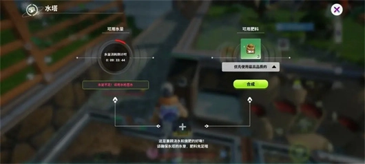 3、我們可以自由選擇肥料的使用順序,比如良品優(yōu)先或者次品優(yōu)先。最后將啾啾駐扎在水塔中就完成了基本設(shè)置,我們只需要在資源用完之前回來補(bǔ)充即可。